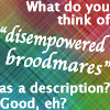 Description: Text: What do you think of "disempowered broodmares" as a description? Good, eh?